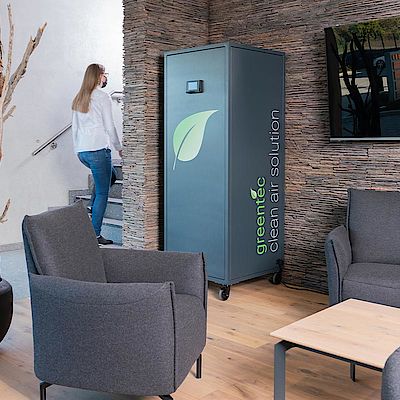 Eine einfache und sehr effiziente Lösung ist die Platzierung eines professionellen Luftreinigers der die Raumluft optimal verbessern kann. Die Reinigungsleistung muss dabei an die Raumgröße und die Anzahl der Personen angepasst sein. Mobile Geräte sind steckerfertig und filtern mit Hilfe entsprechender Filter bis zu 99,995 % der in der Raumluft befindlichen Feinstpartikel wie Viren, Bakterien, Pollen und Hausstaub heraus. So können professionell installierte Luftreiniger die Konzentration der Aerosole in Innenräumen deutlich absenken und somit das Ansteckungsrisiko deutlich minimieren.