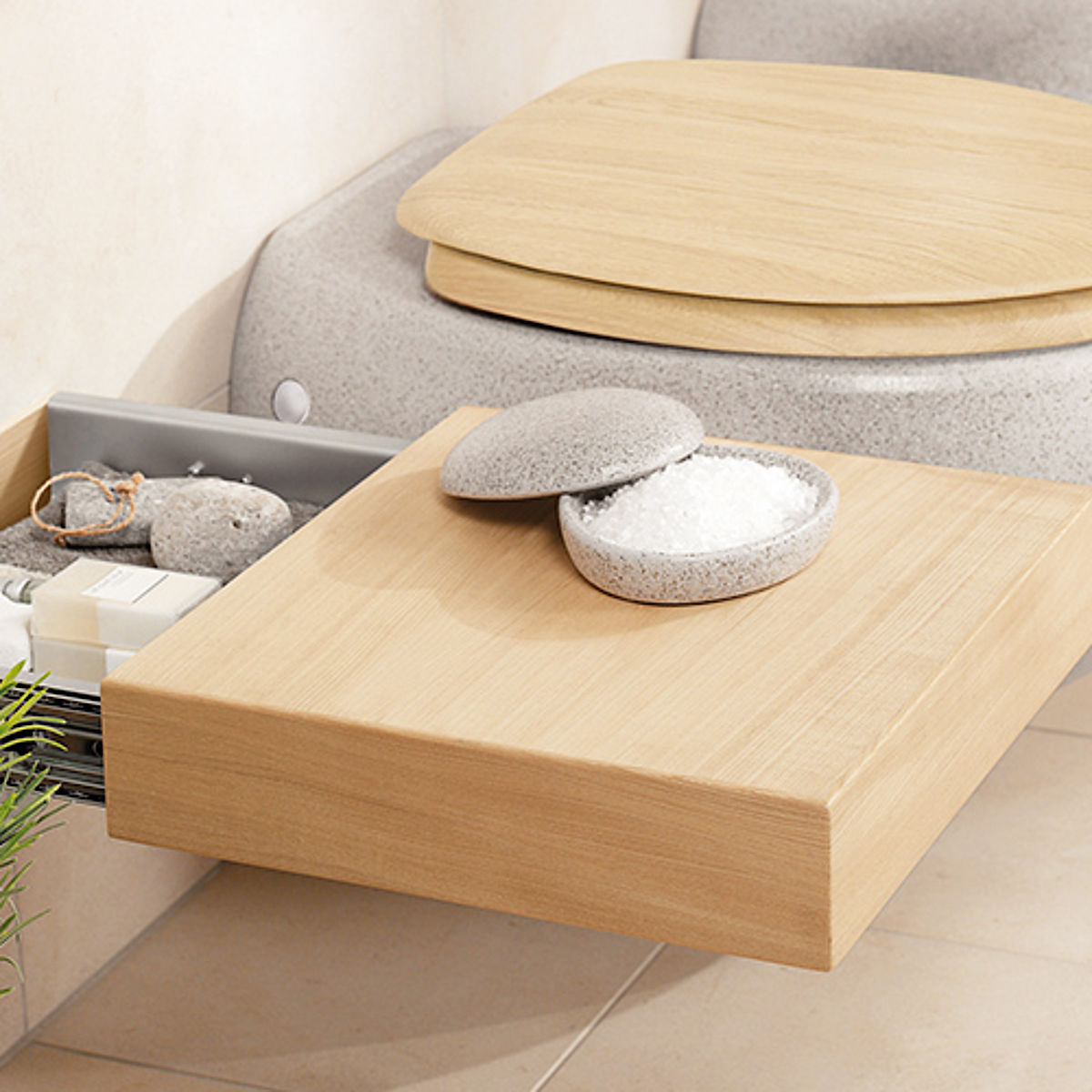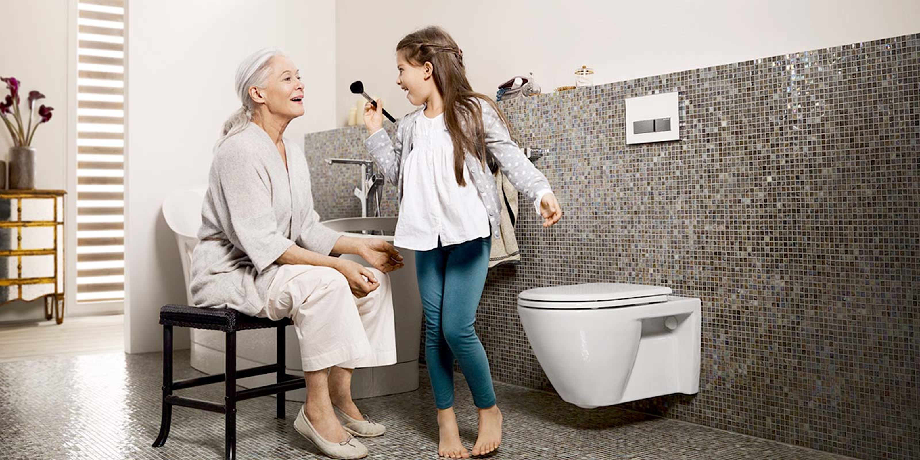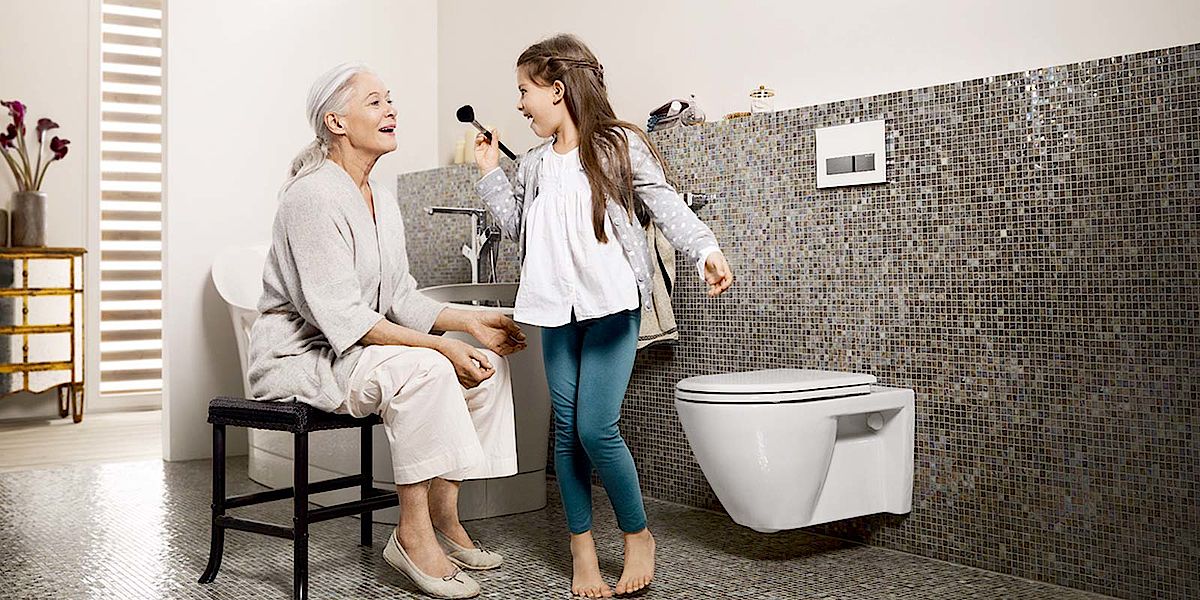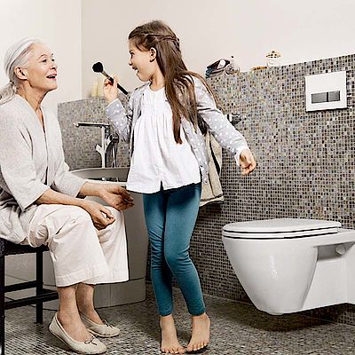 Bei vielen Kinder im Haus, wird gerade das Bad besonders häufig und stark beansprucht. Darum sollten Sie bei der Badsanierung unbedingt auf hygienische Toilettenlösungen achten. WCs ohne Spülrand oder mit verdeckter Befestigung sind besonders leicht zu reinigen. Durch eine zusätzliche Absenkautomatik sorgen Sie außerdem dafür, der Toilettendeckel nach der WC-Benutzung automatisch geschlossen wird