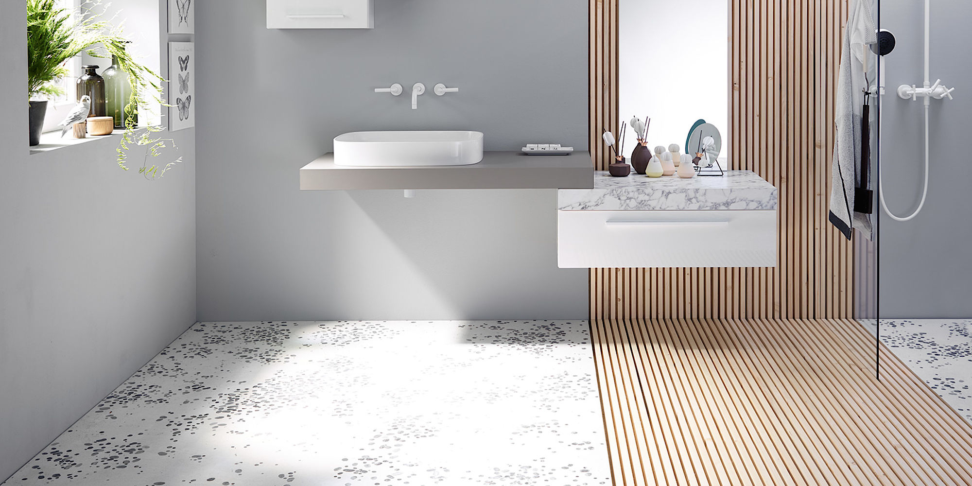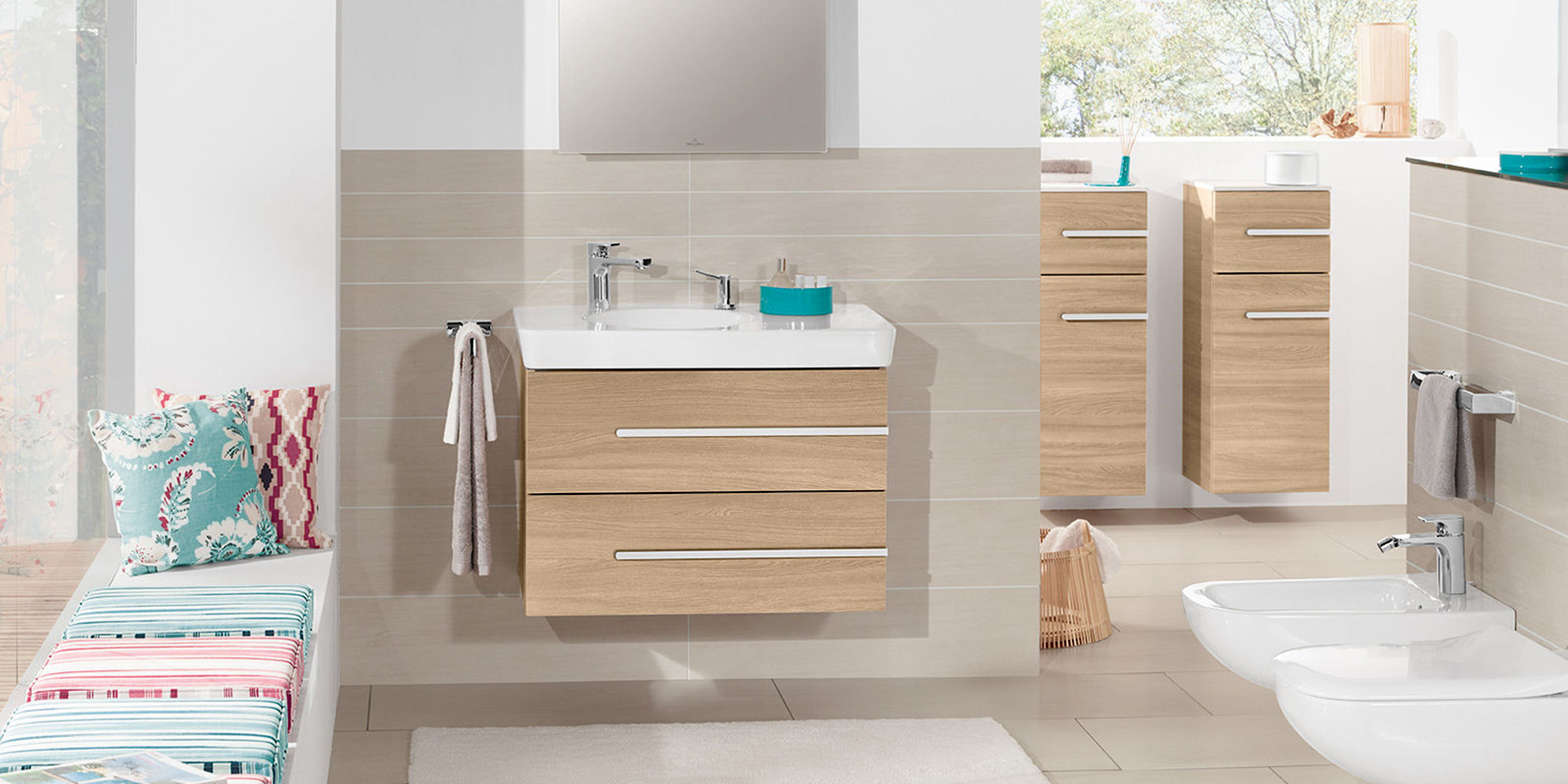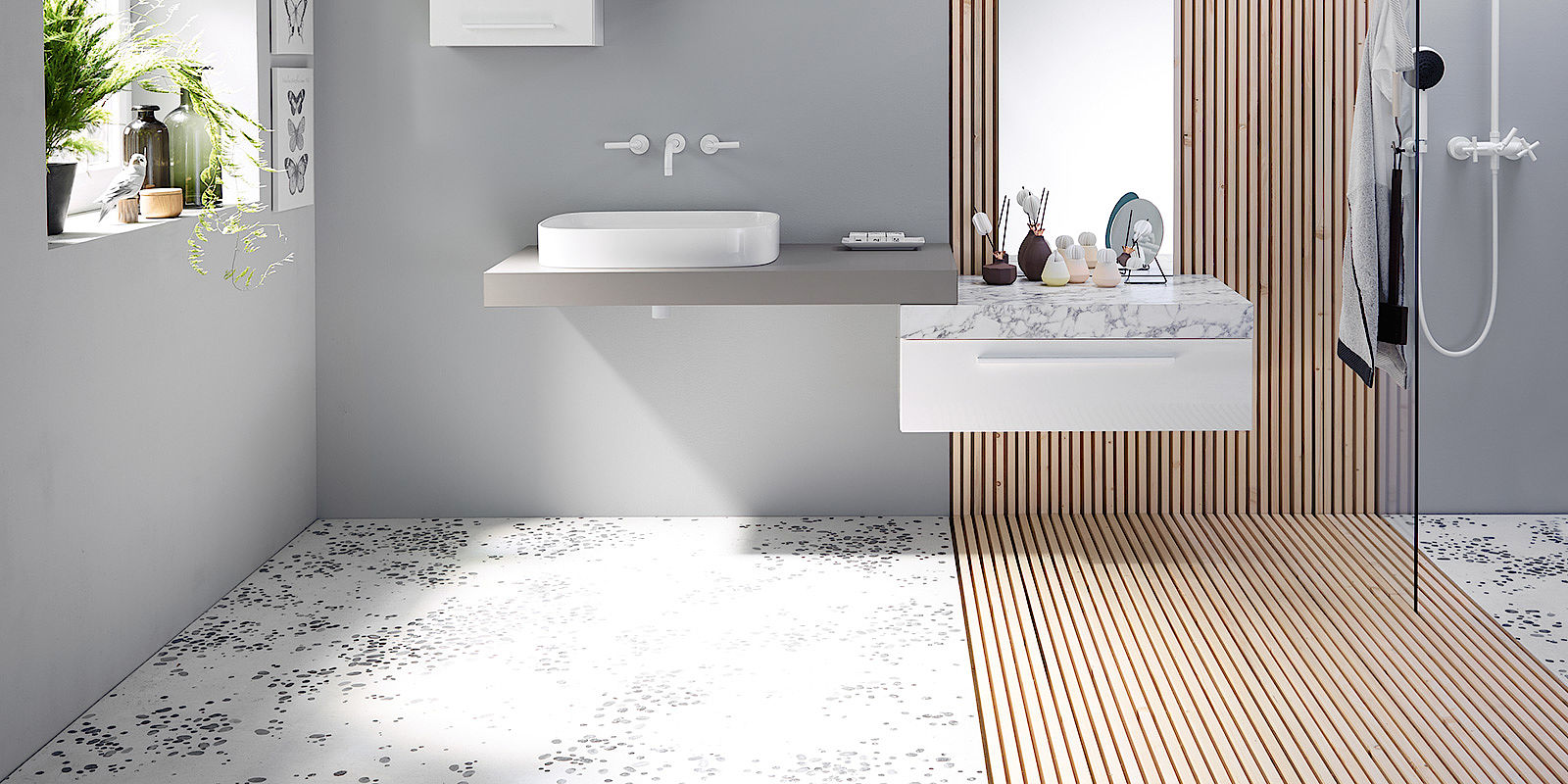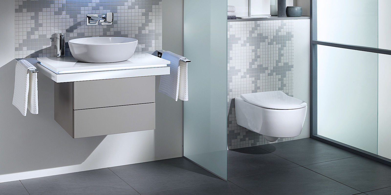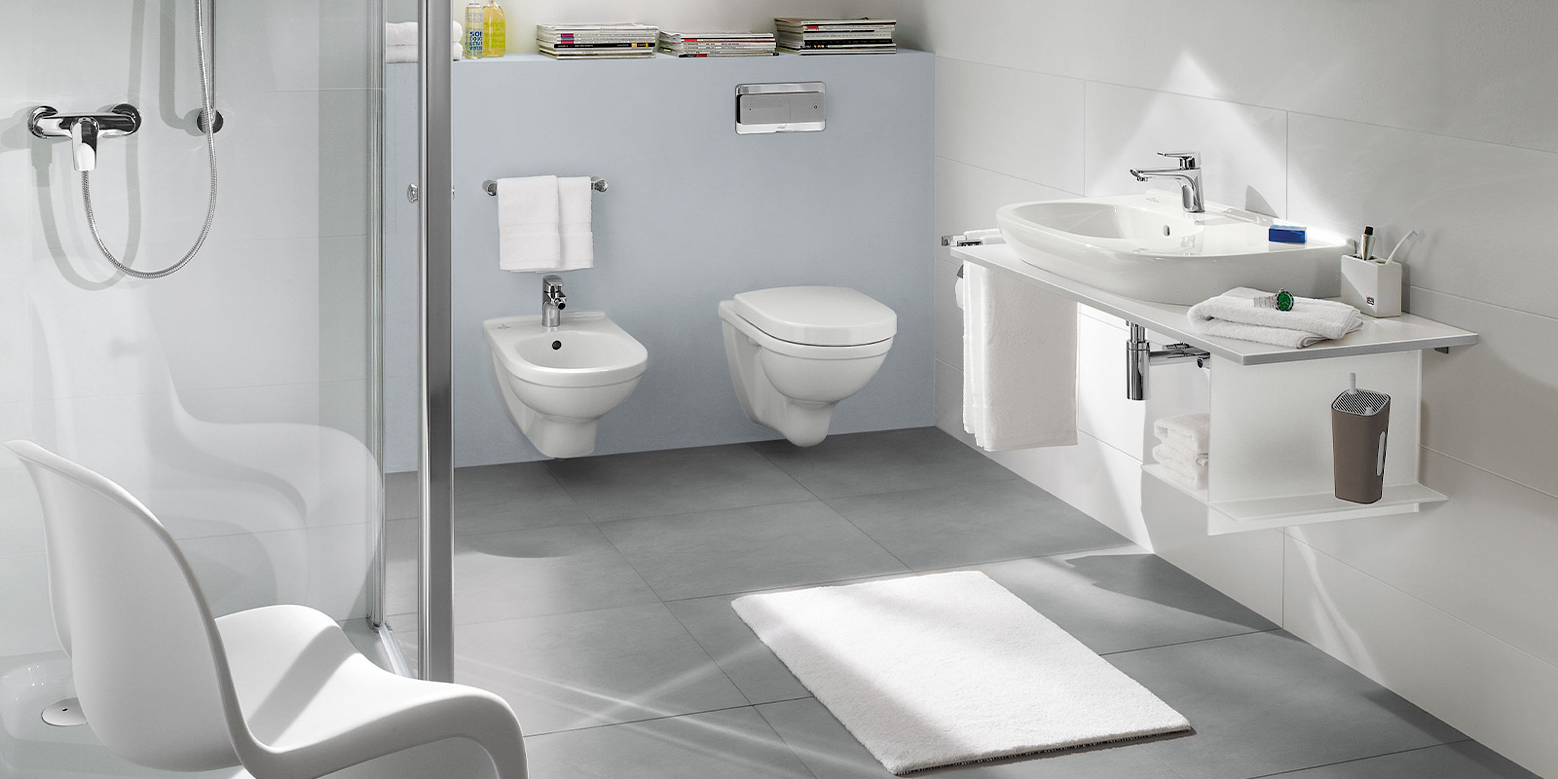 Das Komfort-Bad ist ein Bad der oberen Mittelklasse, das sich durch seine persönliche Note auszeichnet. In der Gestaltung werden Ihre Wünsche und Ihr persönlicher Stil verwirklicht. Von der Wellness-Duschlösung über die gehobene Badausstattung bis hin zur kreativen Fliesenplanung – alles ist möglich. Auch maßgefertigte Einbauten und Stauräume gehören zum Komfort-Konzept. Für ein Bad, das perfekt zu Ihnen und Ihren Ansprüchen passt.