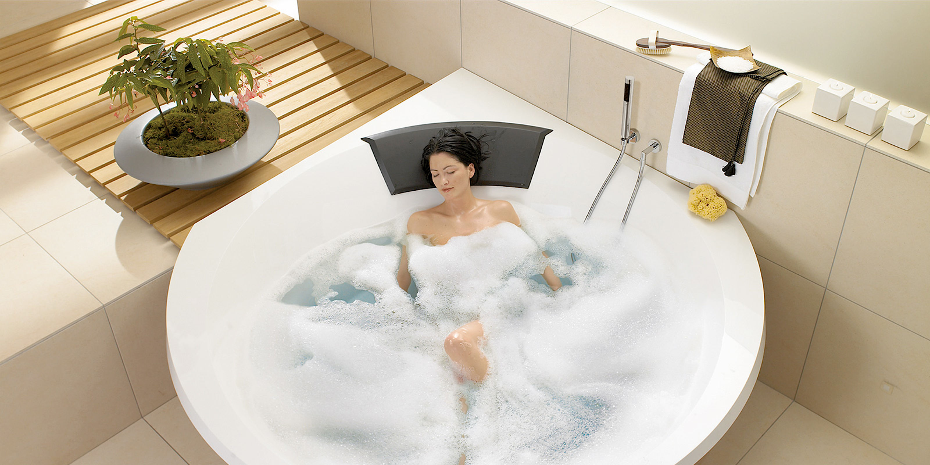 Das Premium-Bad ist ein exklusiver Wohlfühlraum. Wir beraten Sie umfassend in puncto Design und Komfort. Dabei berücksichtigen wir auch Elemente wie Beschattungssysteme, Fensterdekoration, Teppiche, Sitz- und Beistellmöbel. So planen wir Ihr Traumbad. Entspannen Sie z. B. in stimmungsvoller Atmosphäre mit gedämpftem Licht und angenehmer Musik. Und vertrauen Sie im Vorfeld auf unsere erfahrenen Badgestalter, die mit handwerklicher Perfektion und in enger Zusammenarbeit aller Gewerke Ihre persönliche Wellnessoase schaffen.