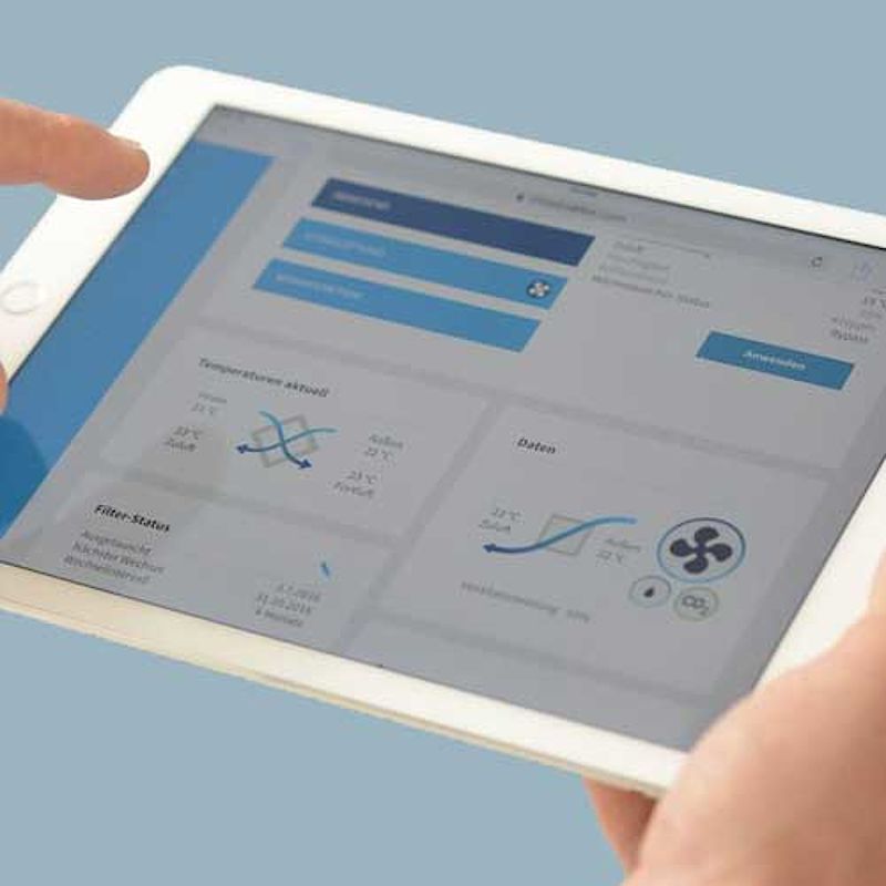Die Steuerung des hausinternen Lüftungssystems mit Wärmerückgewinnung über PC, Tablet oder Smartphone sorgt für maximale Vielseitigkeit in der Bedienbarkeit. Die intelligenten Lüftungsgeräte lassen sich bedarfsgerecht steuern.