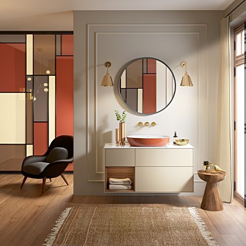 Das trendbewusste Design aus runden und eckigen Formen ist so konzipiert worden, dass es zu neuen und bestehenden Badkollektionen passt. Damit fügt sich Skyla immer harmonisch ins Gesamtbild ein. Die zugleich markante und sanfte Formensprache trägt zur enormen Wandelbarkeit der Kollektion bei – verschiedenste Interior Looks lassen sich mit ihr umsetzen.